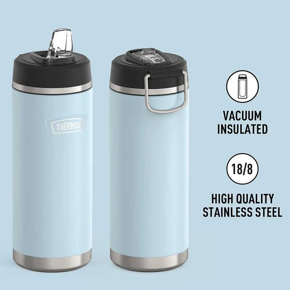 Starts cold. Stays cold. The Icon™ 32-Oz. Stainless Steel Water Bottle from Thermos® keeps you hydrated to take on the day. From the Griptec™ base to superior vacuum insulation and durable True-Coat™ finish, the bottle is ideal for everyday use. It’s also equipped with a durable pivot straw made with Tritan™ from Eastman® and a wide-mouth opening to keep up with your busy day. No detail has been left behind. The bottle is not for use with hot liquids. It is dishwasher safe.