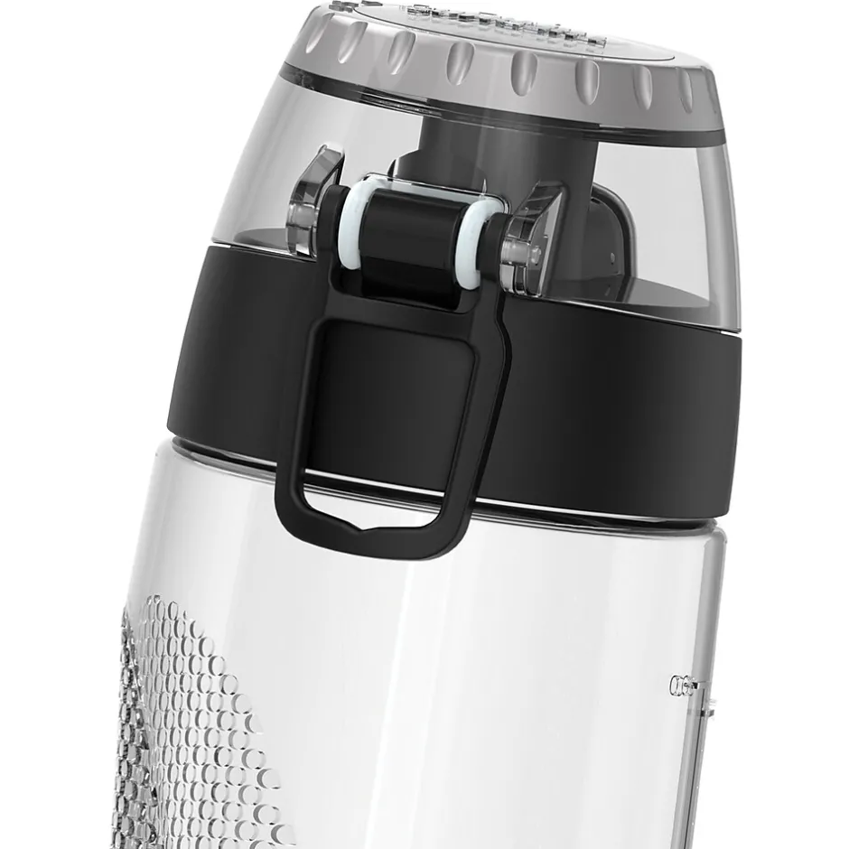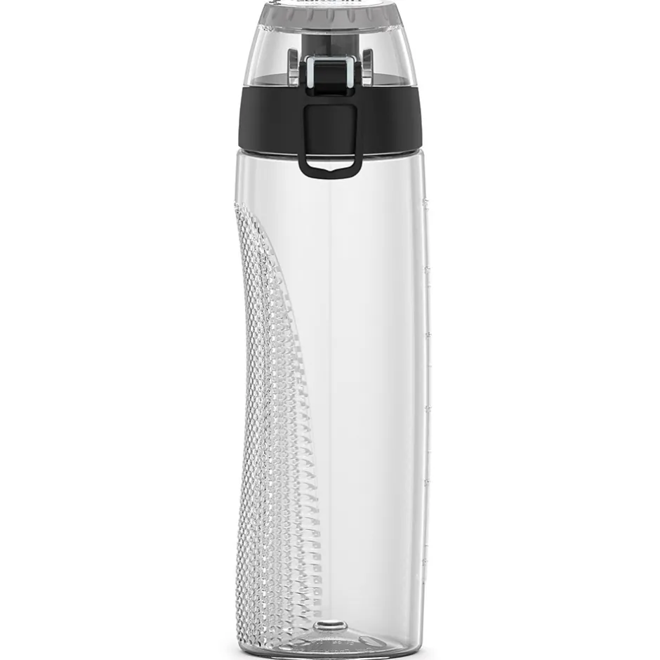 The new 24-Oz. Plastic Hydration Bottle with Meter by Thermos gives you the flexibility to choose what matters most. Nothing is more vital to staying healthy and fit than proper hydration, and this hydration bottle make it easy. It’s made of BPA-free materials that are reusable and built to last. Incorporated into the lid is a rotating intake meter to monitor your daily water consumption. With an ergonomic design that is comfortable to grip and a flip up carrying loop, this Clear hydration bottle is great for long walks, workouts, the ride to work, or wherever life takes you.