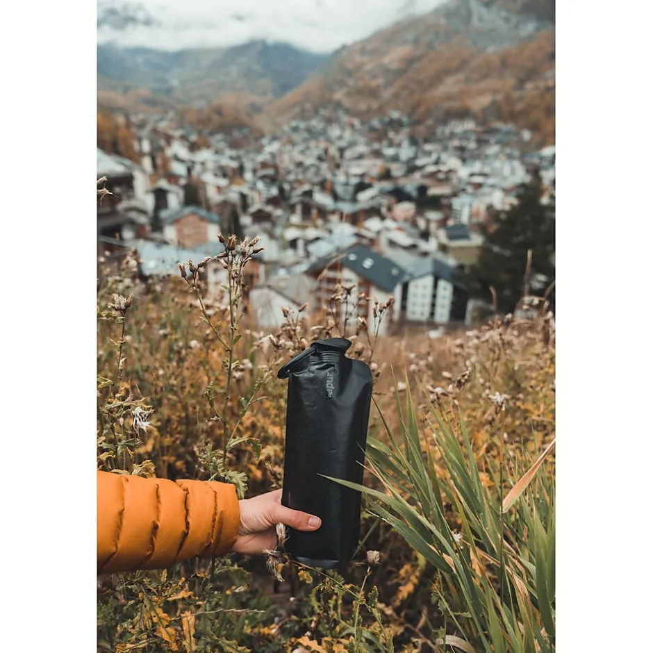 The Vapur Anti Bottle is BPA free and stands when full and folds when empty. The bottle is dishwasher safe and can be attached to any active gear through the integrated carbiner on the cap. It is the perfect companion for your next adventure, wether hiking in the mountains, camping, kyaking or simply taking the family on that special vacation, hydrate anywhere and everywhere!