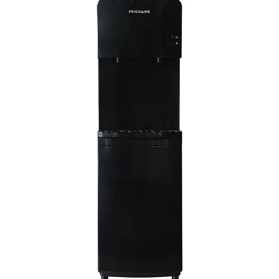 Make sure you drink enough water! This Black Frigidaire water cooler dispenses both cold and hot water and can hold the contents of 3 or 5 gallon bottles. With 100 watts of cooling power and 420 watts of heating power, your water will always be at just the right temperature. Don’t rely on a thermo-electric cooled unit—this water cooler is powered by a robust compressor cooler, making sure your water is always nice and cold. There is also an indicator displaying, cooling, heating and power activity. With its clean look, this water cooler would fit in any kitchen, office, or dorm.