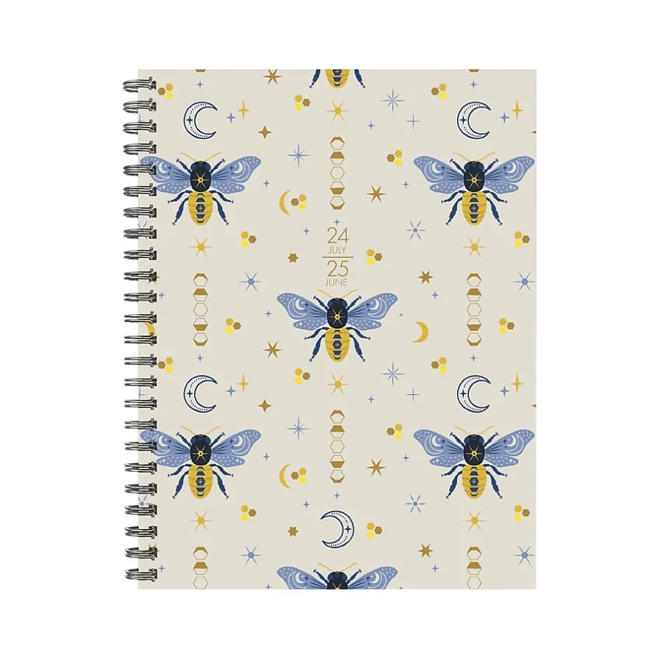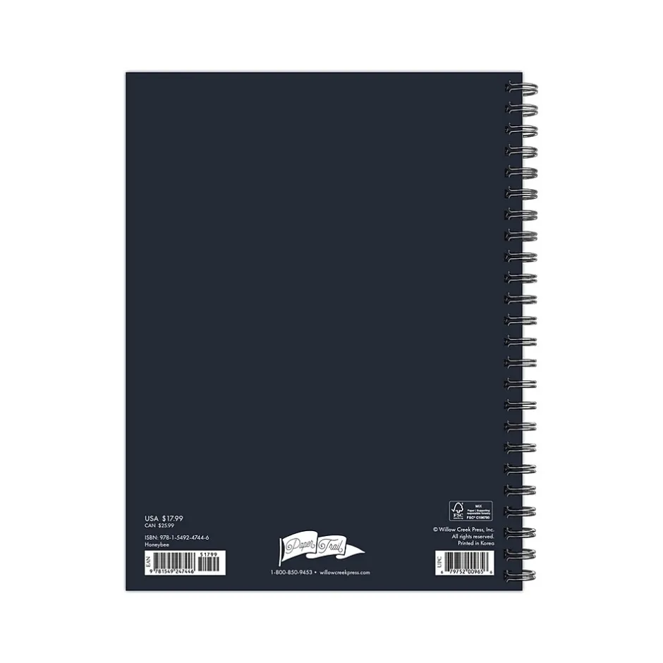 This Willow Creek Honeybee softcover weekly and monthly planner combines fashion with fun, functional features that are great for laying out the year ahead. In addition to monthly snapshots and two-page weekly spreads that provide ample space for detailed planning, there are also sections for weekly shopping lists, goals, and a habit tracker. This is a perfect inspirational gift that is the perfect size for school, office, handbag, or backpack. At Willow Creek, they are committed to eco-friendly efforts to make their products more sustainable, which is why Willow Creek planners are printed with soy-based inks on high-quality FSC certified paper. This planner includes a spiral binding, monthly color-coded faux tabs that make accessing information a breeze, and over 300 stickers to dress up special days like birthdays and other upcoming events on your social calendar. Additional features include weekly checklists and habit tracker, and additional notes pages in the back. Also includes moon phases (CST) and standard US and international holidays. Protected by a durable plastic-free cover, this planner also includes a handy storage pocket offering a secure space for papers, receipts, and other important items.