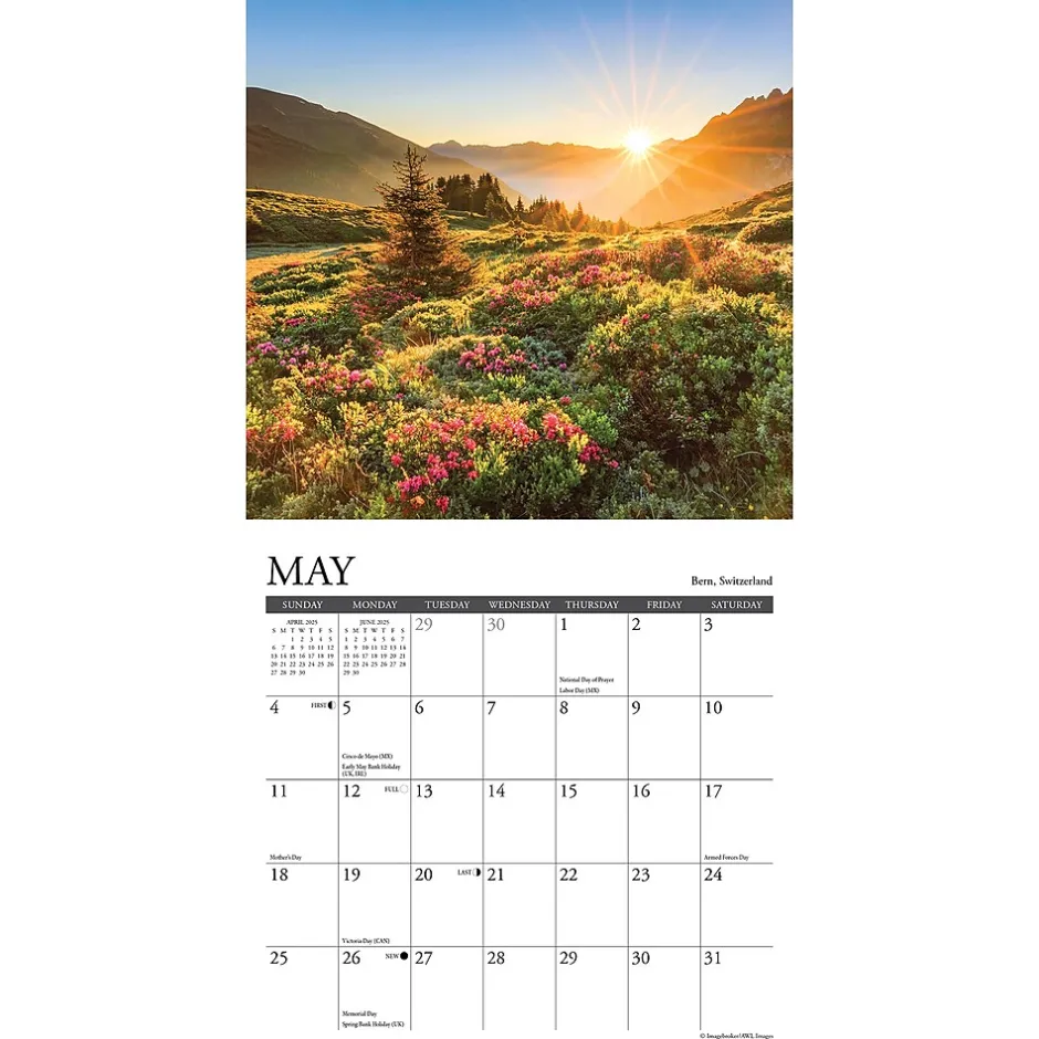 PAINTED MAJESTY – From coastal retreats to mountain vistas, the 2025 Sunsets 7” x 7” Wall Calendar features stunning locations bathed in the golden glow of the setting sun. Each month invites you to witness the fleeting beauty of twilight hues, rippled reflections, and magical moments that make you grateful for the extraordinary wonders of our world.