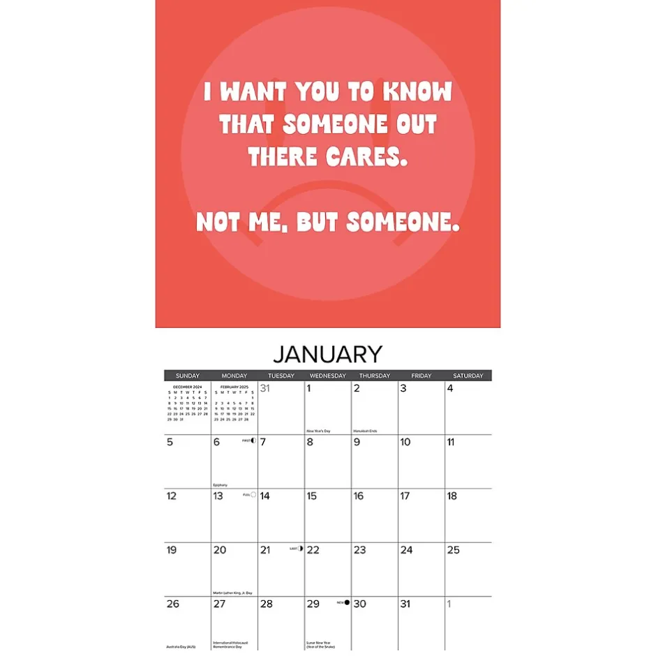 This 2025 12″x12″ wall calendar is a convenient size for the home or office – with humor and sass for the whole year. Plan important events, appointments, and plans with this annual calendar, makes a great gift – funny and anti-affirmations!
