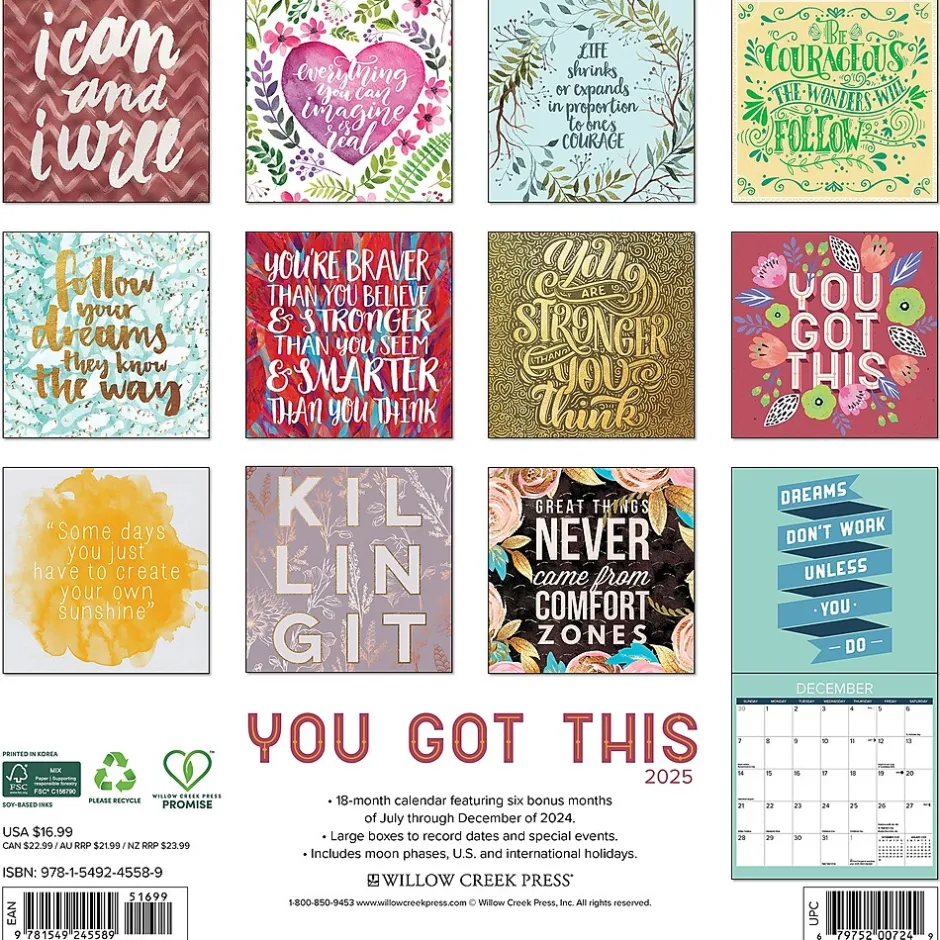 This 2025 12″x12″ wall calendar is a convenient size for the home or office – with beautiful and inspiring art for the whole year. Plan important events, appointments, and plans with this annual calendar, makes a great gift!
