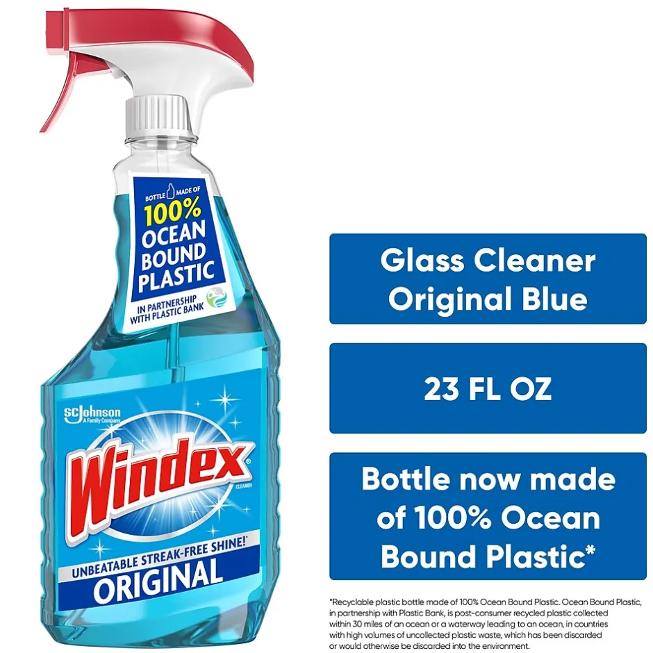 The Sealed Air™ Windex® 26 oz original glass and surface cleaner with Ammonia-D, perfectly cleans mirrors, tabletops and other hard surfaces without leaving any streaks. This liquid cleaner is perfect to use on chrome, porcelain, ceramic tile, plexiglas, formica counters, plastic and vinyl surfaces. Featuring PH level of 10.5 – 11, it easily cleans body oils, dust, fingerprints, grease, grime, smudges and water-based soil. This cleaner is phosphates free and sold as 12 per pack.
