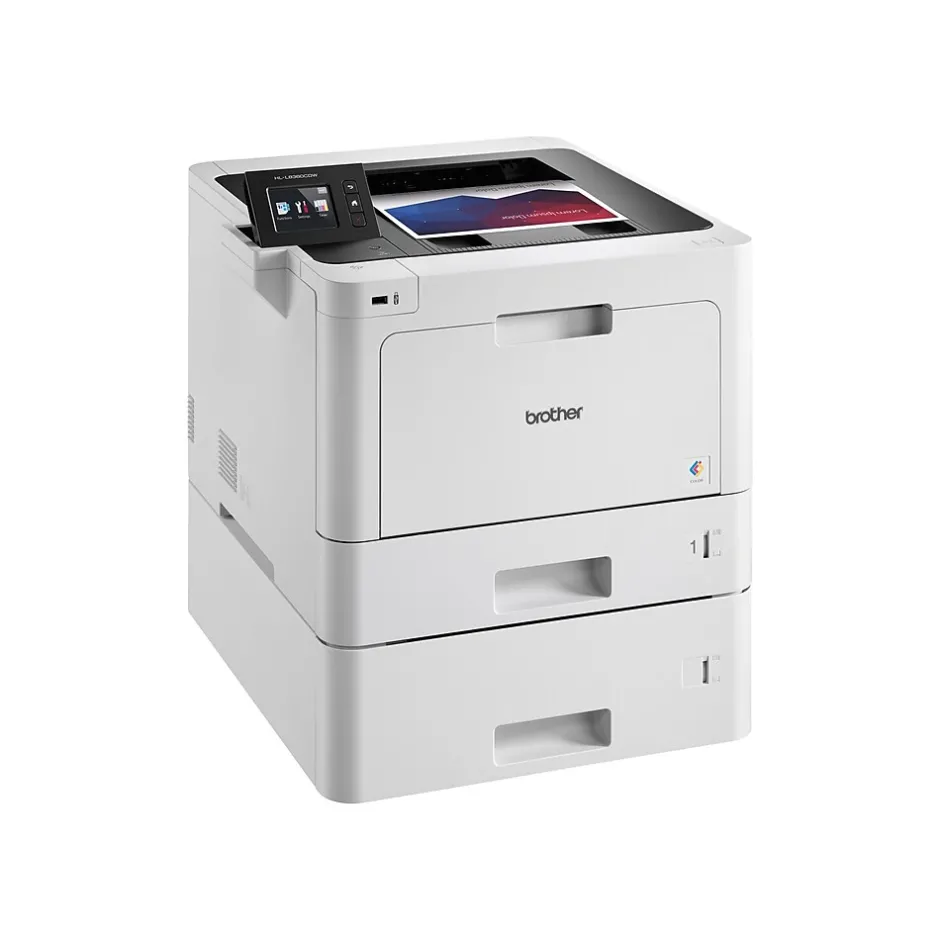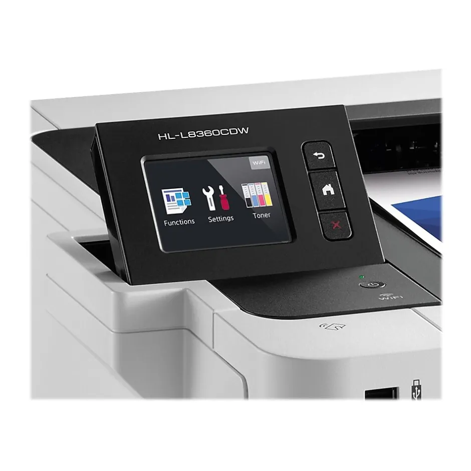Accelerate workplace productivity and print high-quality documents by using this color laser printer. A 2.7-inch touchscreen makes it easy to queue up jobs and adjust print settings, while integrated Wi-Fi connectivity lets you print directly from cloud services, office computers, and smartphones. Print speeds of up to 33 pages per minute make handling high-volume tasks simple, while a maximum resolution of 2400 x 600 dpi ensures printed documents look crisp and detailed. Enjoy uninterrupted printing performance with the 750-sheet input tray that can complete most high-volume jobs without needing to be refilled. The 50-sheet multipurpose tray allows for printing on envelopes and nonstandard paper sizes, while the 150-sheet output tray helps keep documents in order after printing. Featuring an 800MHz processor and 512MB of print memory, this Brother printer boots up quickly and delivers fast responsive performance.