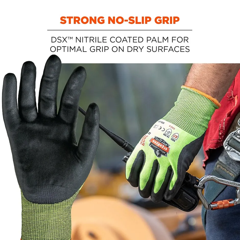 - STRONG NO-SLIP GRIP – DSX nitrile coated palms for optimal grip and dexterity with dry surfaces and materials