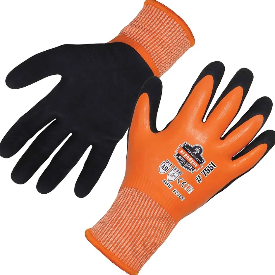 - DEXTERITY – Dual layer of latex and nitrile remains flexible in cold weather for easy handling of equipment and materials