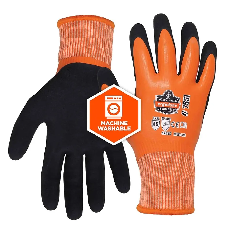7551 M Orange ANSI A5 Coated Waterproof CR Gloves