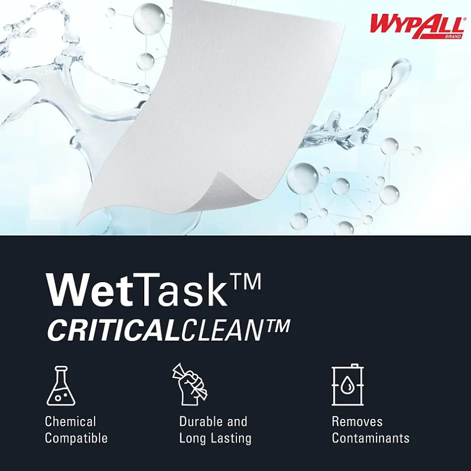 - 140 Sheets/Roll; 6 Rolls of WypAll® CriticalClean™ WetTask™ Wipers for Bleach; Disinfectants; and Sanitizers/Case; 840 Sheets/Case; White; Center-Pull Roll; Refill Only