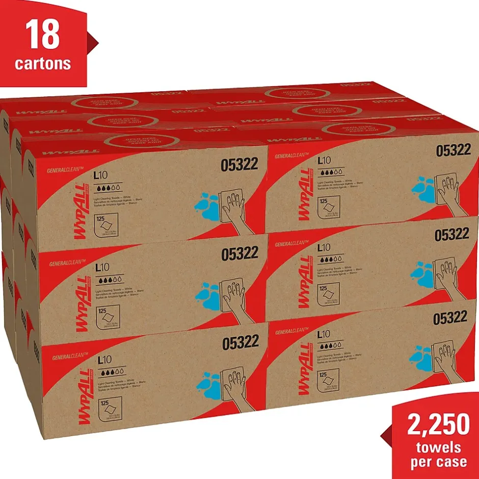- 125 Sheets/Box; 18 Boxes of WypAll® GeneralClean™ L10 Light Cleaning Towels/Case; 2,250 Sheets/Case; White; Pop-Up Box; Limited Use Towels