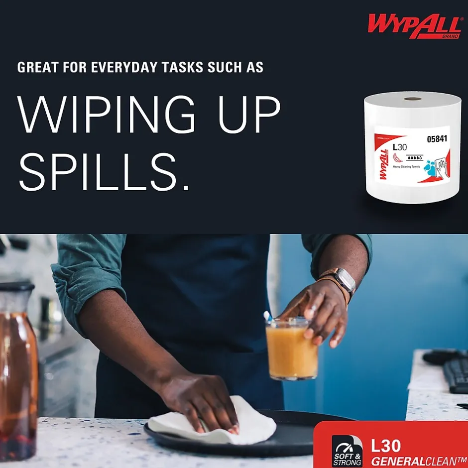 - 875 Sheets/Roll; 1 Jumbo Roll of WypAll® GeneralClean™ L30 Heavy Duty Cleaning Towels/Case; 875 Sheets/Case; White; Strong and Soft Towels