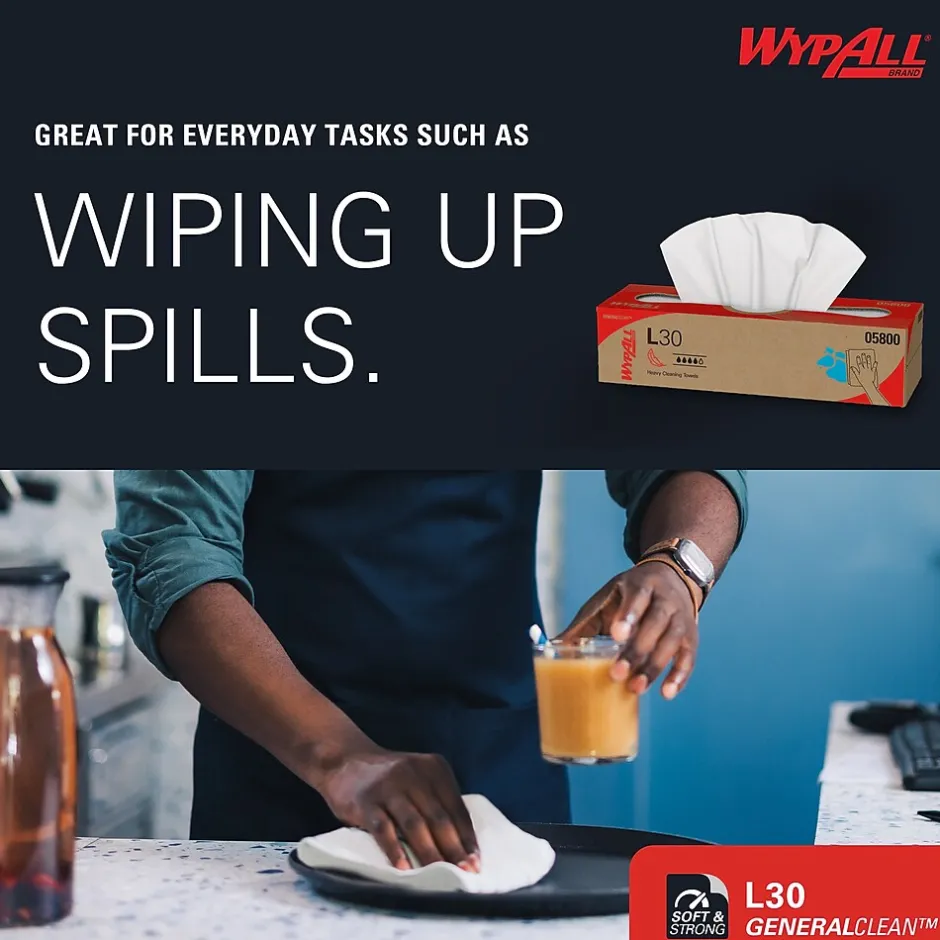 - WypAll® GeneralClean™ L30 Heavy Duty Cleaning Towels; 100 Sheets/Box; White; Pop-Up Box; Strong and Soft Towels