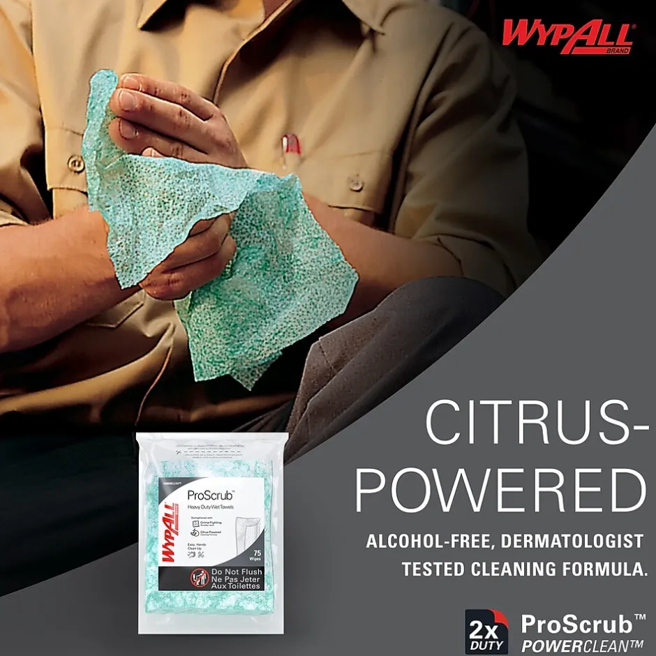 - 50 Sheets/Canister; 8 Canisters of WypAll® PowerClean™ ProScrub™ Heavy Duty Wet Towels/Case; 400 Sheets/Case; Green and White; Wipes & Free Canister; Dual Action Cleaning