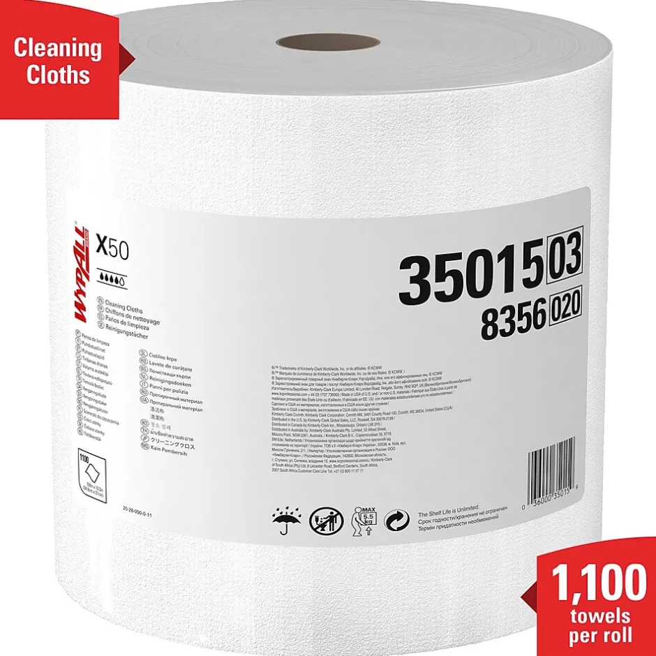 Clean machines, surfaces, and tools more efficiently with this jumbo roll of 1100 cloths. They’re designed to meet the highest performing standards by absorbing water, solvents, and oil. Increase productivity and keep your supply budget intact thanks to these strong WypAll cloths, which reduce the need for extra wipers or cloth rags.