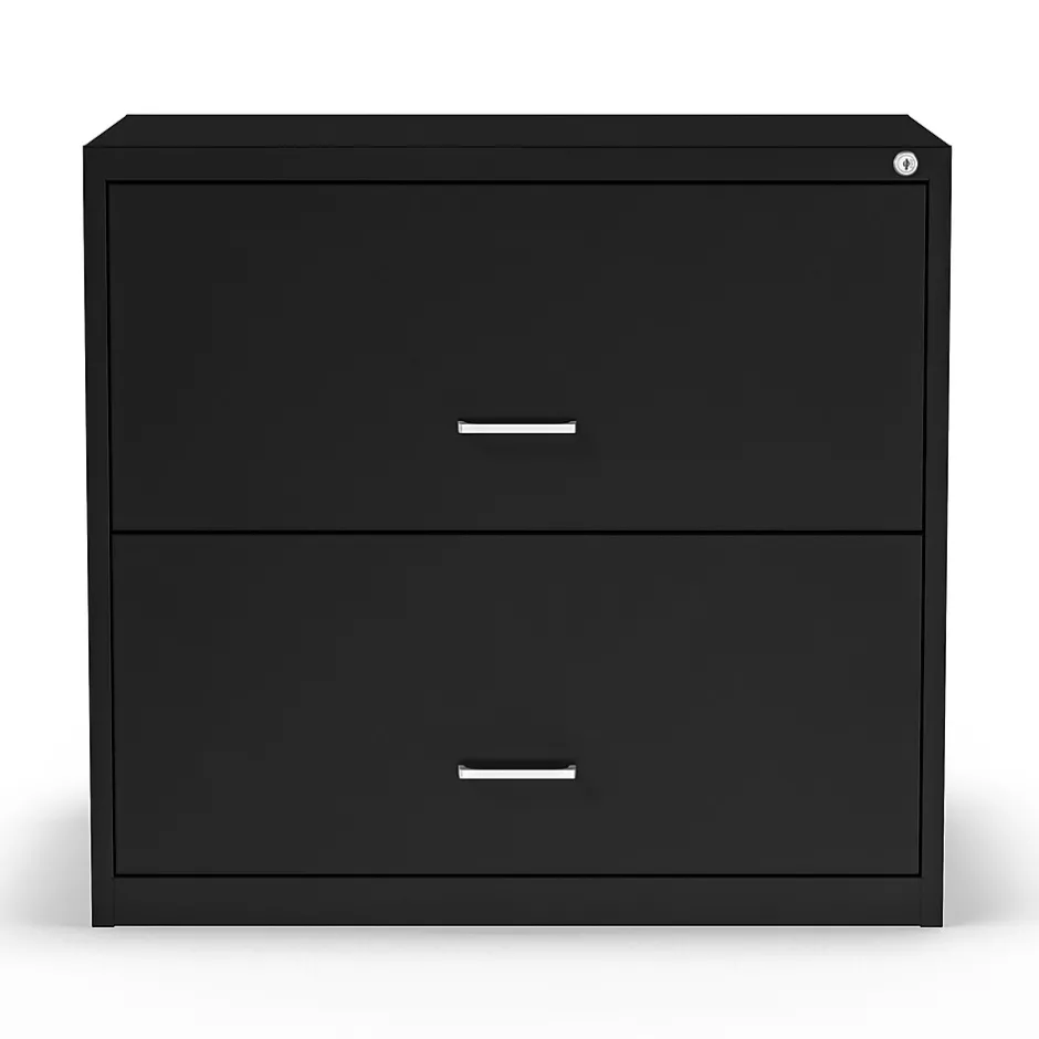 Expand your business filing system with this light duty lateral file cabinet. Two generously sized drawers offer ample space for organizing and storing paperwork, while the keyed lock keeps sensitive paperwork stored securely inside. The durable metal construction stands up to frequent use in your home office or smaller professional workspace. Each drawer accepts letter-size file folders, so you can store a wide range of documents in this black two-drawer file cabinet.