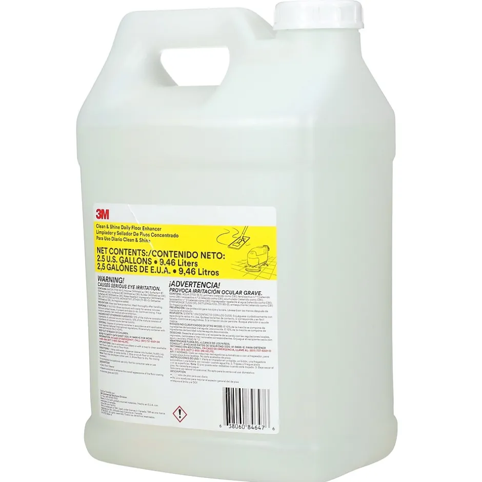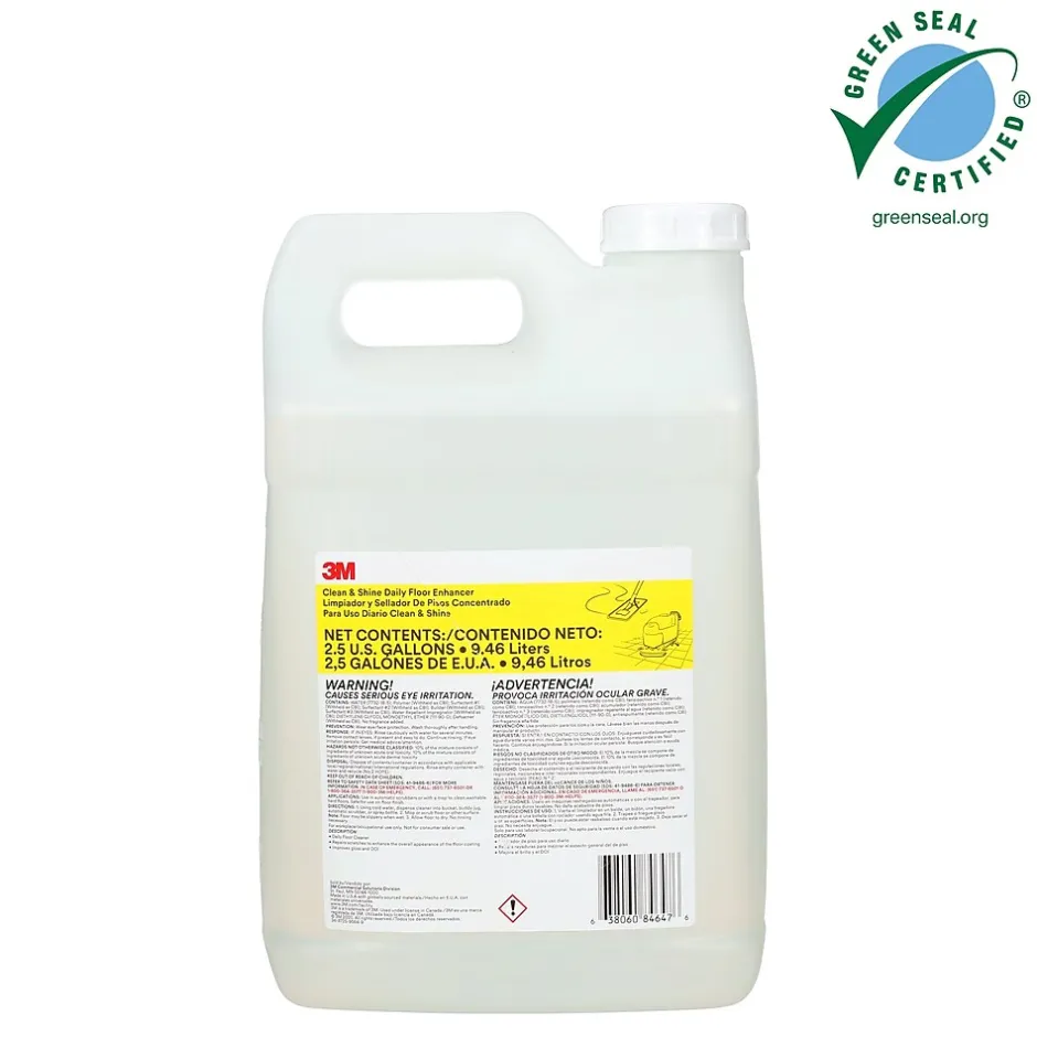 The 3M™ Clean & Shine Daily Floor Enhancer is a floor cleaner that also improves gloss with daily use. Fine scratches are repaired which often reduces the need for burnishing. And it reduces the frequency of top scrubbing and stripping which means less disruption of day-to-day facility operations. Couple it with the Scotch-Brite™ Clean and Shine Floor Pad & the Scotchgard™ Protect & Shine Floor Protector for a full system that reduces labor and product cost associated with routine floor maintenance.
