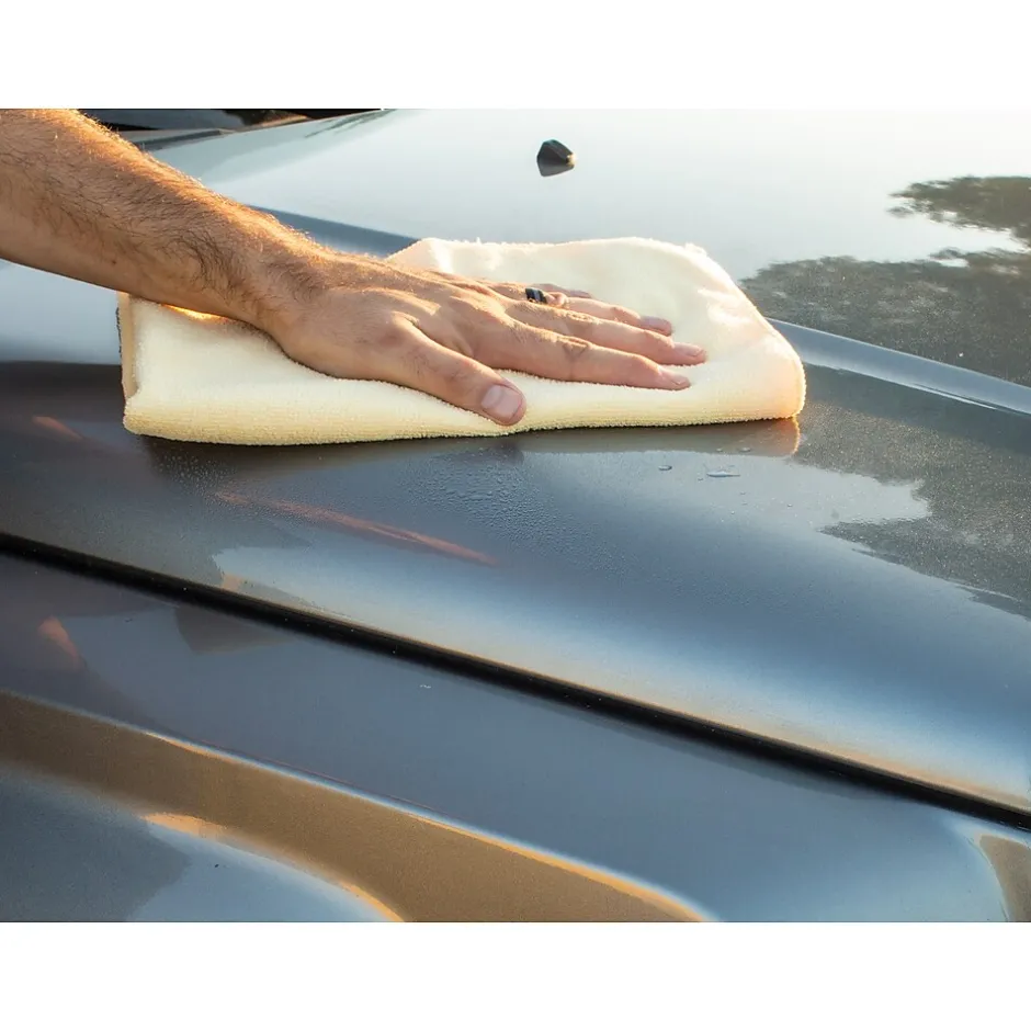 Meguiar’s Supreme Shine Microfiber produces amazing mirror-like shine on All finishes. The thick, deep, dual-sided microfiber pile absorbs more product quicker than traditional terry towels, and safety edging eliminates the possibility of swirling or scratching. These towels are prewashed for maximum absorbency and are safe on all paint and clear coats. Since they are rusable and machine washable you can use them again and again to keep paint pampered and swirl-free.