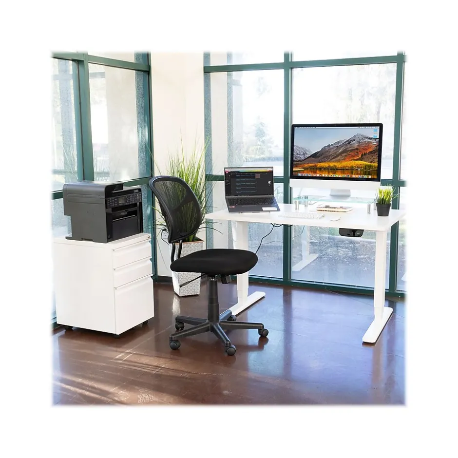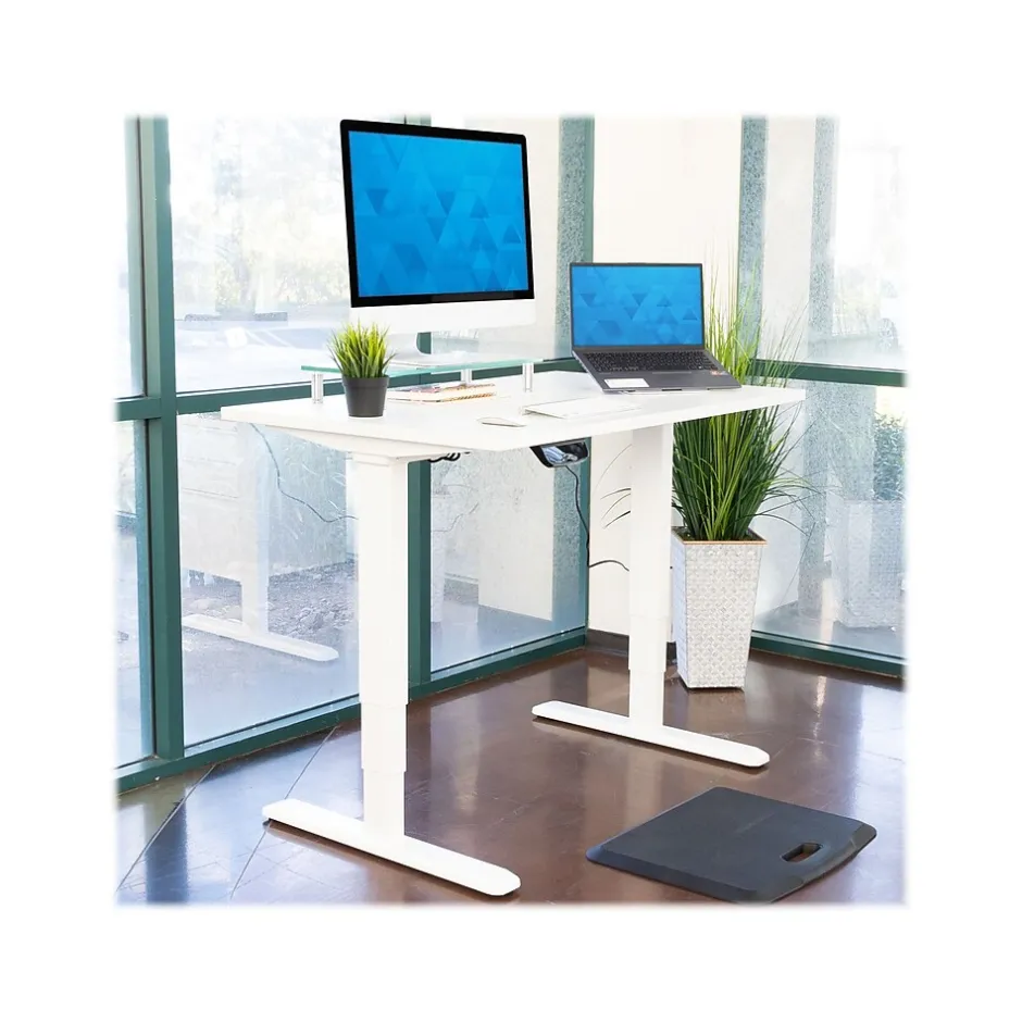 Benefit from reduced stress to your neck, shoulders, and wrists by using the Mount-It! dual-motor electric standing desk to transform your traditional desk into an ergonomic workstation. You’ll feel the difference right away. The advanced touch-screen control panel has three customizable height presets, so you can save your favorite seated and standing heights. The dual electric motors provide high load-bearing capacity and smooth height adjustment. Plus, they’re thermal- and overload-protected for increased safety and longevity while you work. An integrated sensing technology detects both hard and soft objects in the movement path to avoid any unwanted damage. Select your favorite tabletop, and install it on this desk to complete your setup. The tabletop is easily cleanable with a damp cloth.