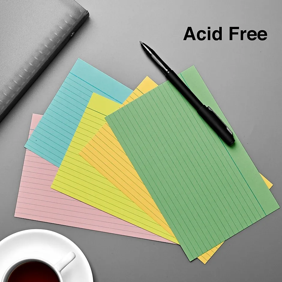 Organize important information with these line-rule index cards, which come in an array of pastel hues. The large size provides ample space for lists of notes, and a lined format keeps writing neatly legible. These Staples Business Essentials 5 x 8-inch assorted pastel index cards come in a 300-count pack, providing an abundant supply for creating flash cards, meeting notes or quick reference guides.
