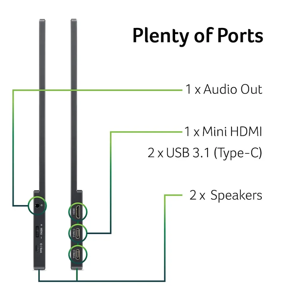 - Ultra-Slim Portable Design: Get outstanding portability with an ultra-light, ultraslim PM1 Series monitor. At just 3.85lbs and only 0.4″ thin, the 15.6” display slides easily into bags and can accompany you everywhere. It’s ideal for use on the go, takes up minimal desk space, and is perfect for use as a secondary monitor during presentations.