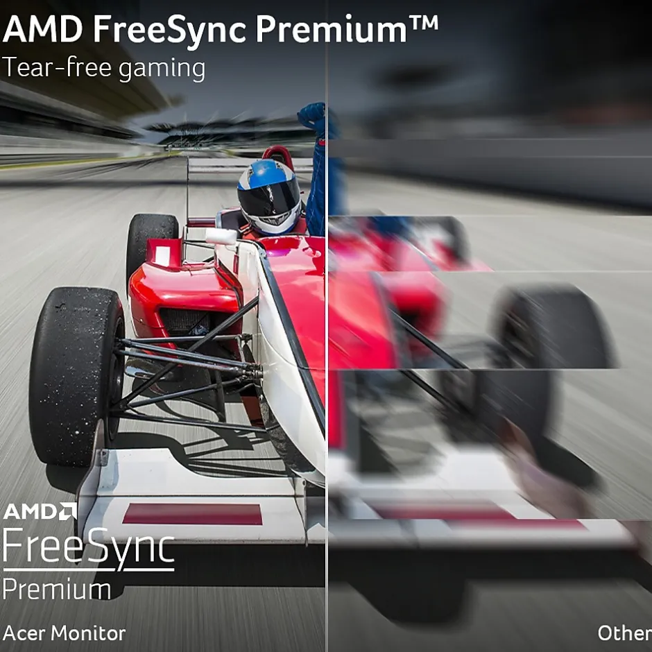 - AMD FreeSync Premium Technology: Say “goodbye” to stuttering and tearing. With AMD FreeSync Premium, the monitor’s frames are synced with the graphics card’s frames, which eliminates screen tearing and provide the smoothest gaming experience.