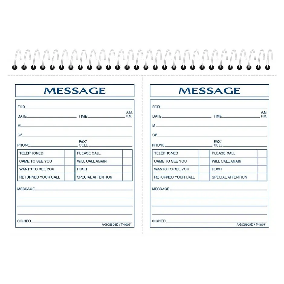 Ensure that messages are thorough by using this telephone message book. The book contains space for 200 messages and comes preprinted with areas for filling out names, dates, and other message information. This Adams telephone message book produces carbonless copies and has a sturdy 27-point backing that works as a solid writing surface when you’re away from a desk.