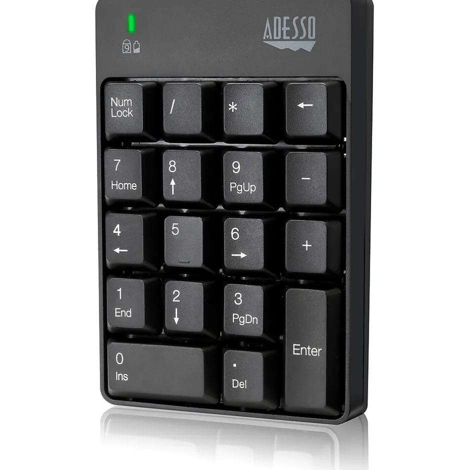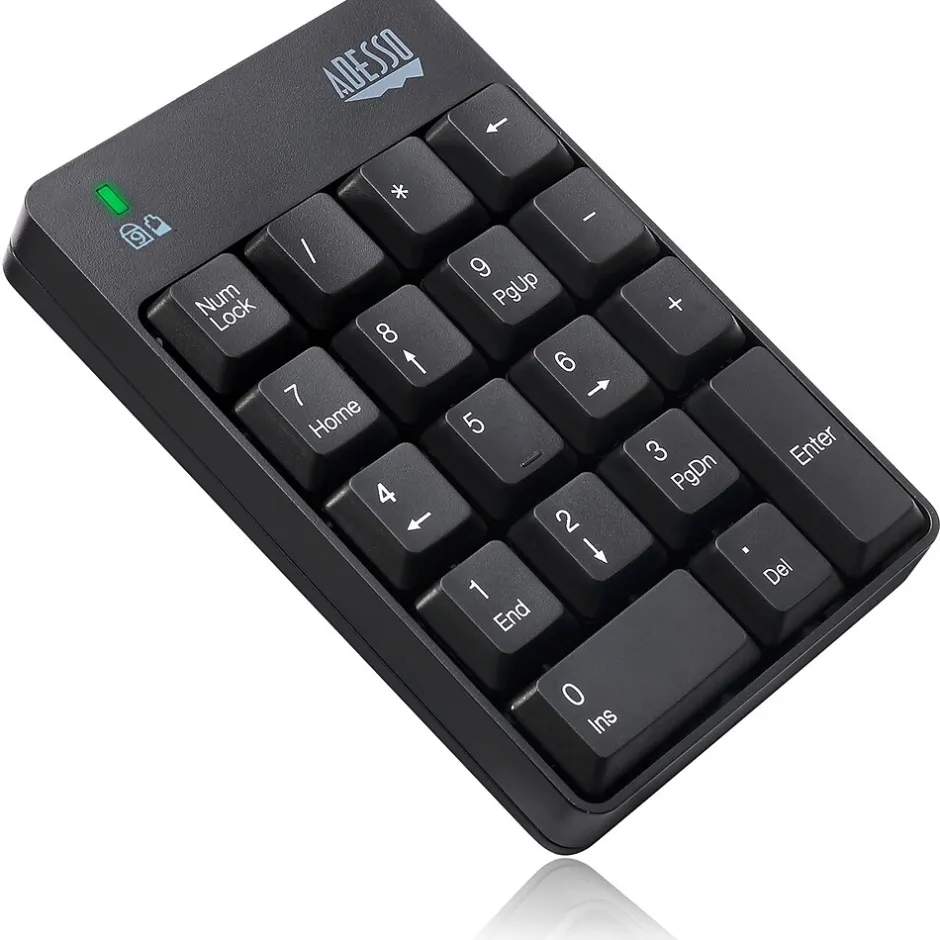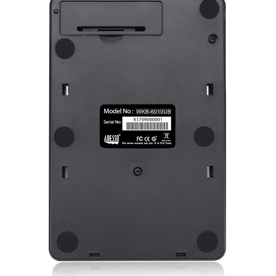 The Adesso WKB-6010UB spill resistant 18-key keypad is the keypad that you deserve to have for many reason. To begin with, it is wireless, eliminating any unnecessary wires and keep your working station neat and organized. It is also extremely compact and lightweight which makes it portable. Its membrane key switch also provides a quiet typing experience that lasts up to five million keystrokes. Perhaps the greatest feature that the WKB-601UB has is that it is spill resistant. The structural design of the casing is meant for fluids to exit out of the unit in case of accidental spills. Next time when you accidently spill drinks while using your numeric kepad you can be assured those fluids will not trap inside the keypad causing damage to your device.