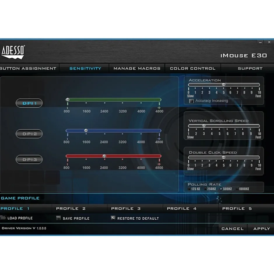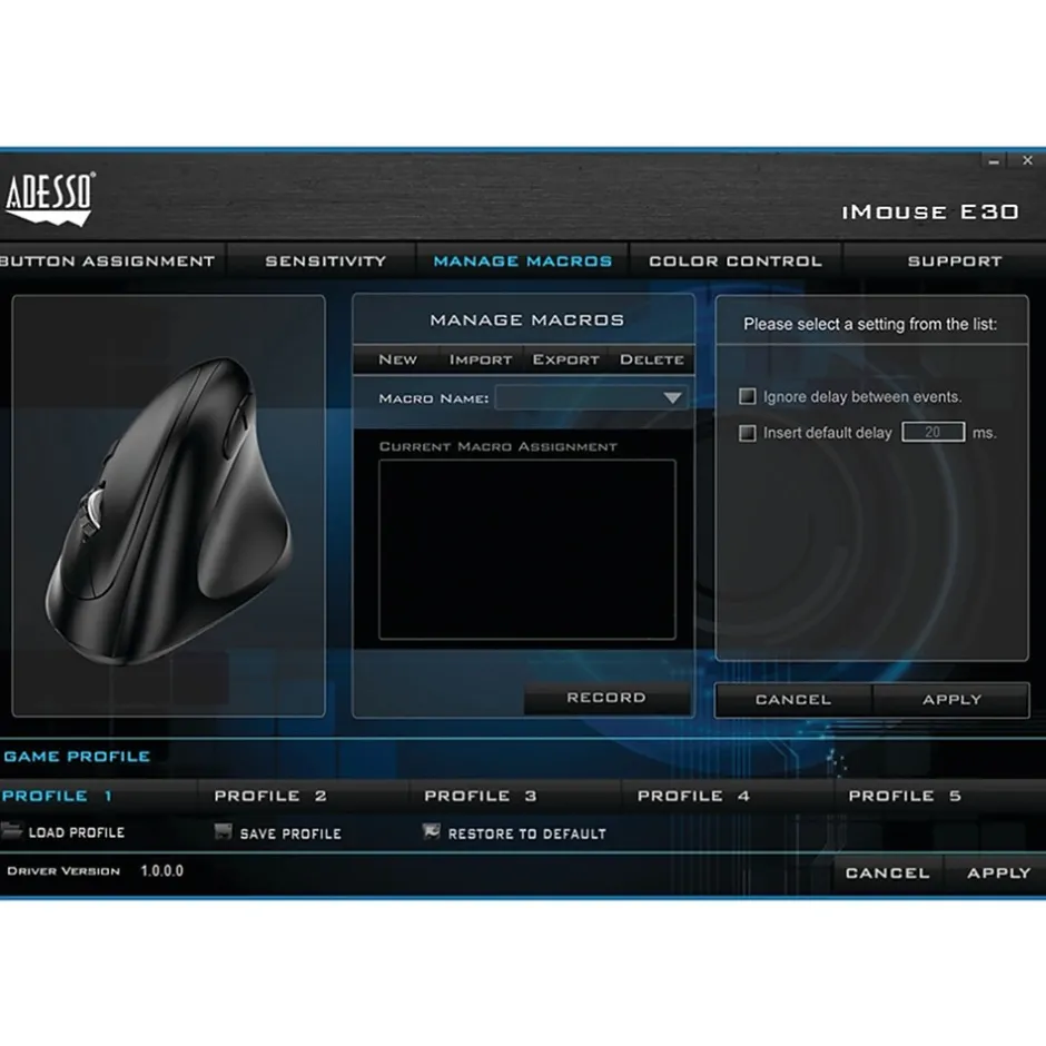 With 2.4 GHz radio frequency technology, the Adesso iMouse E30 Vertical Programmable Mouse provides you with wireless convenience and the freedom of a smooth connection for up to a 30 ft. range without tangled cables. This ergonomic mouse is designed with a vertical orientation and a contoured shape that provides a uniquely comfortable user experience. With this wrist-friendly contour support, you will hold your hand in a healthy “handshake position” which is the neutral position of your forearm as opposed to the “twisted forearm” position as with a regular mouse. Two internet buttons are conveniently located on the side of the mouse for back and forward page browsing. The switchable DPI button on the top provides multiple levels of mouse cursor speed that is useful in different environments. The advanced optical sensor technology keeps the mouse precisely on point and lets you work on most glass, wood, marble and leather surfaces without a need of a mouse pad. Finally, the mouse requires no drivers. Simply plug the USB receiver into any available USB port and be ready to enjoy the freedom of a comfortable and wireless mouse experience!