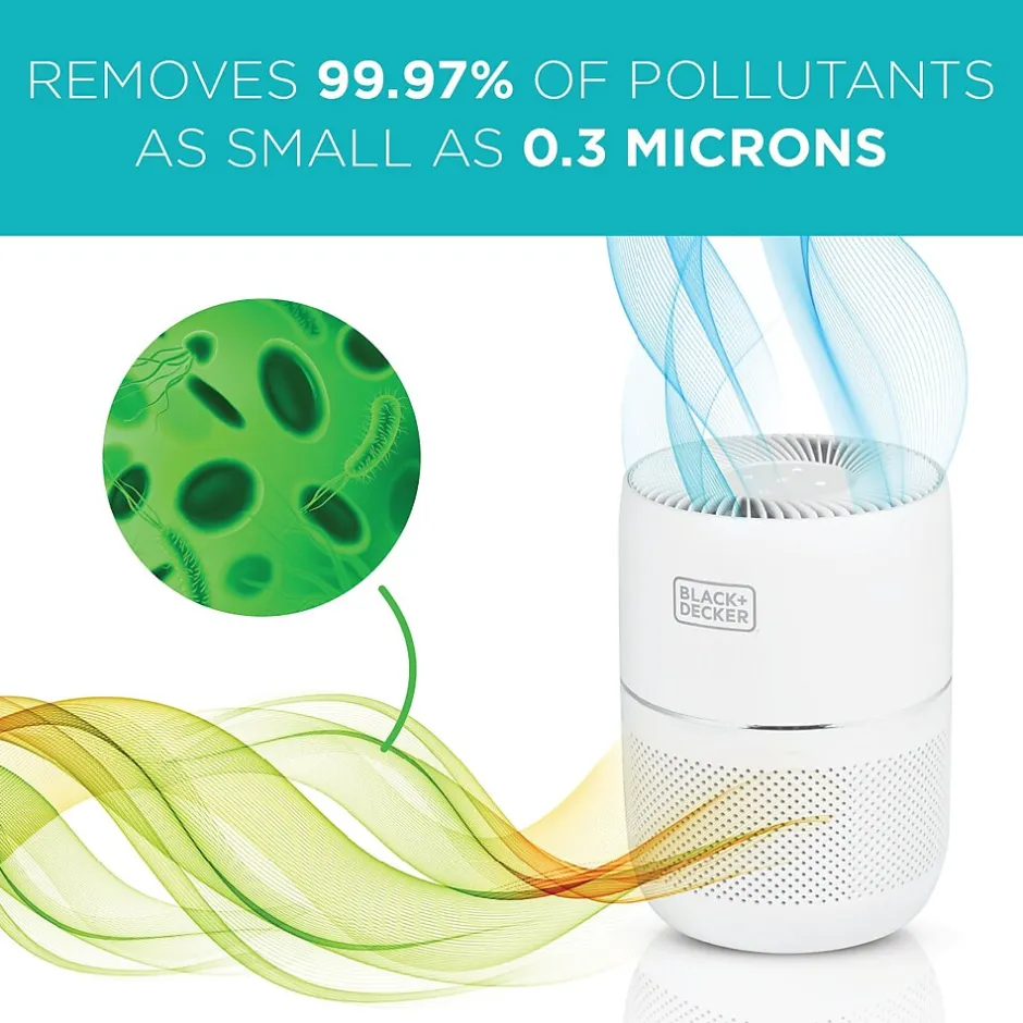 Our indoor home air purifier has 3 filtration stages that eliminate 99.97% of pollutants as small as 0.3 microns to ensure you have the highest quality air. The pre-filter filters larger particles such as dust and pet hair, making this one of the best dust mite air purifier and pet dander purifier on the market. This indoor air purifier contains an activated carbon filter reduces household odors such as cooking smells and secondhand smoke. It provides 93 square feet of coverage 5x per hour. This ENERGY STAR certified compact air purifier is equipped with touch controls to customize settings such as Low, Medium and High speeds. In Sleep Mode the fan operates at a reduced speed. Features a shut-off timer with 1, 2, 4 and 8 hour options. An audible sound and indicator light alerts you when the filter needs to be replaced.