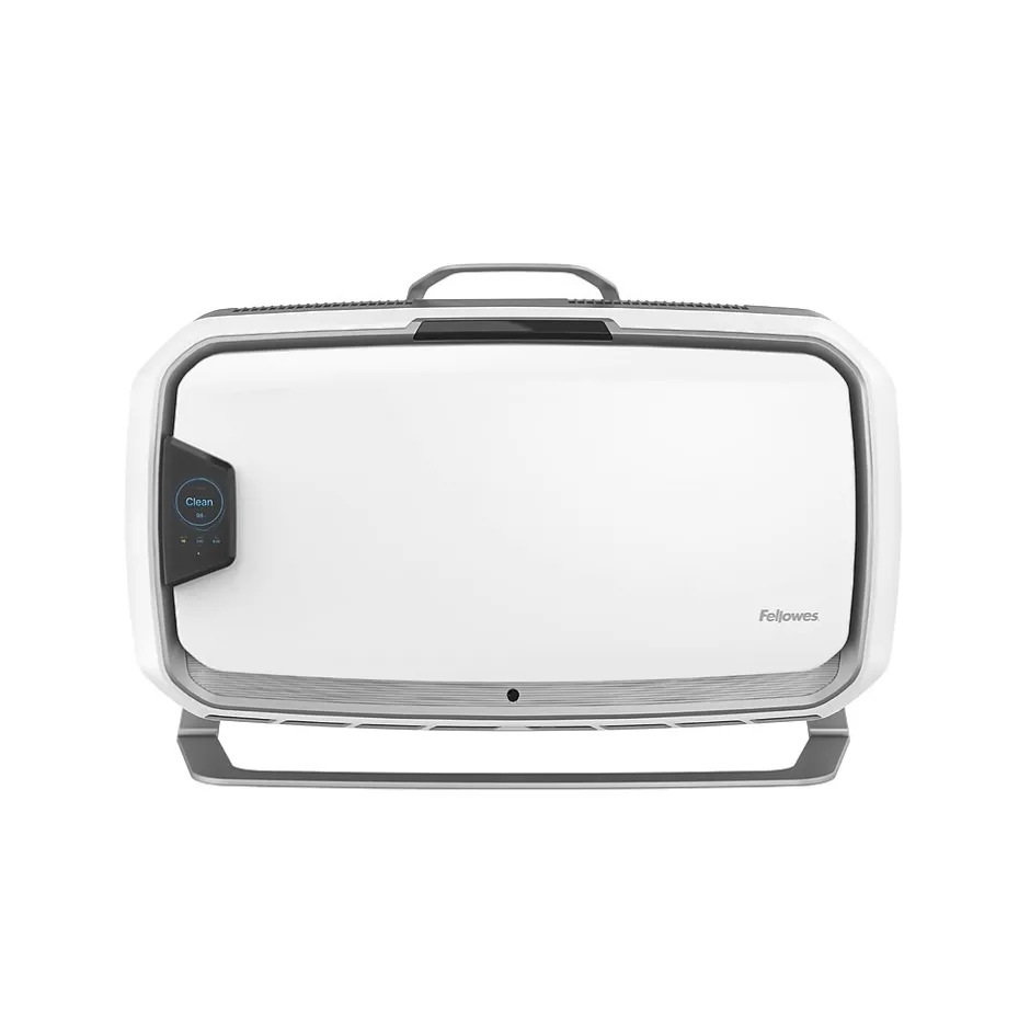 The Fellowes Array AS1 floor-standing air purifier can be installed on any flat surface. Clean, subtle design includes an integrated Lookout display showing users air quality status. The Fellowes three-stage filtration (prefilter, carbon, and H13 True HEPA) effectively removes at least 99.95% of particles as small as 0.1 microns, including allergens, such as pollen, dust, pet dander, and smoke. Equipped with EnviroSmart+ technology that includes a full suite of comfort and control sensors to continuously monitor contaminants (TVOCs, PM10, PM2.5), room occupancy, and noise levels, temperature, humidity (rH), carbon dioxide (CO2), and pressure to proactively respond to changes.