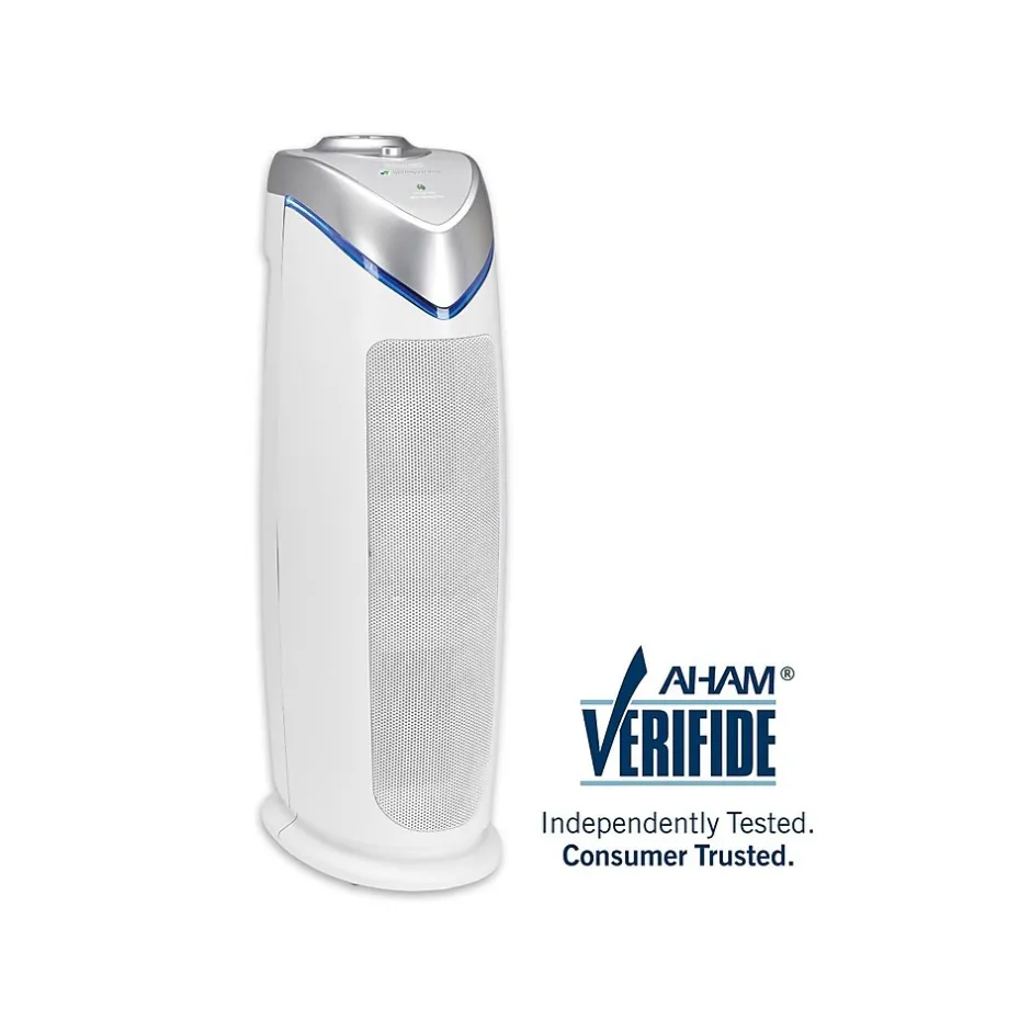 Improve your indoor air quality with the Germ Guardian four-in-one air purifier. Perfect for allergy sufferers, the HEPA filter captures 99.97% of dust and allergens as small as 0.3μ in size. More than just a filter, the UV-C light kills germs, while the charcoal filter captures odors. Standing 22″ tall, it is lightweight and ideal for use in rooms up to 167 sq. ft. Includes a UVC control and a filter change indicator. Choose from three speeds, including a low speed that runs ultraquiet.