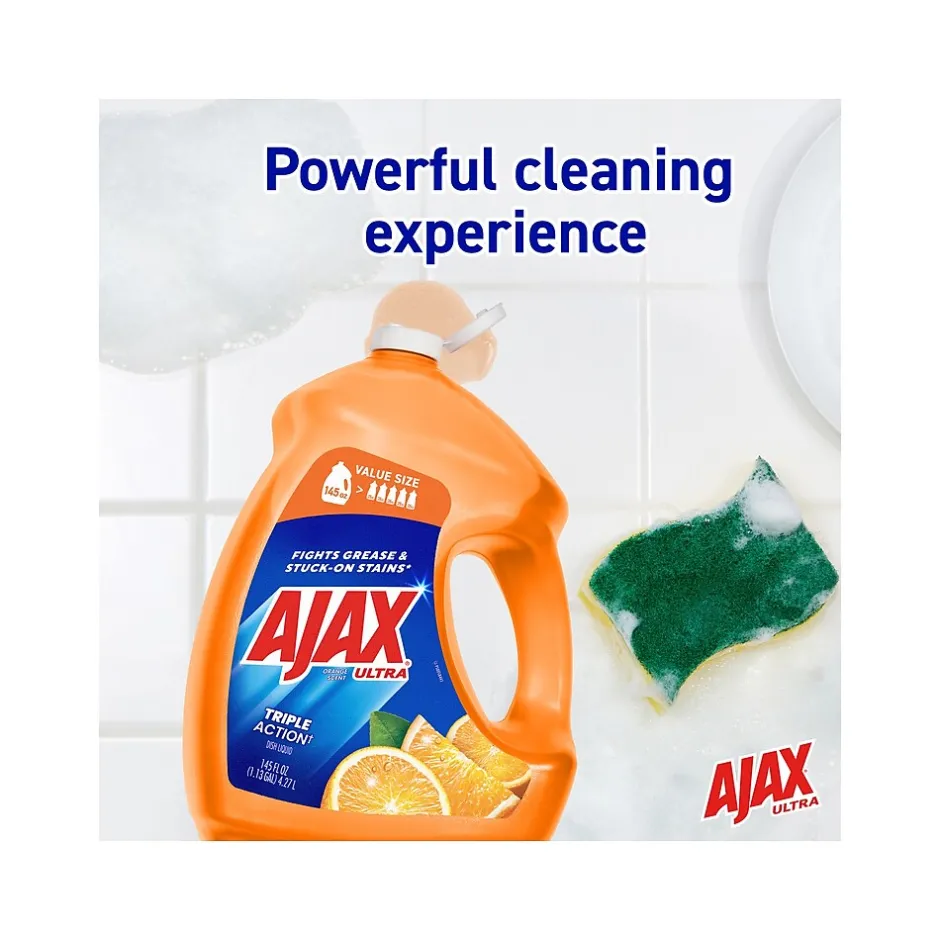 Boost your dishwashing experience with the Ajax Ultra liquid dish soap. Ajax has combined your favorite Orange scent with the efficacy that fights grease and stuck-on stains. This variant’s distinctive triple action ensures a superior cleaning experience every time. Soap formula cuts grease, leaves dishes sparkling clean, and contains an odor-fighting fragrance technology. This dish soap not only leaves your dishes sparkling clean, but easily dissolves stuck-on grease with a delightful burst of citrus freshness. This dishwashing liquid is made with naturally inspired fragrances, zero parabens, and no phosphates. The power of the Ajax Ultra goes beyond the sink. This versatile kitchen dish soap allows you to pretreat laundry, wash tires, and wipe down appliances. Leave the grime to the Ajax Ultra so you can get back to what really matters.