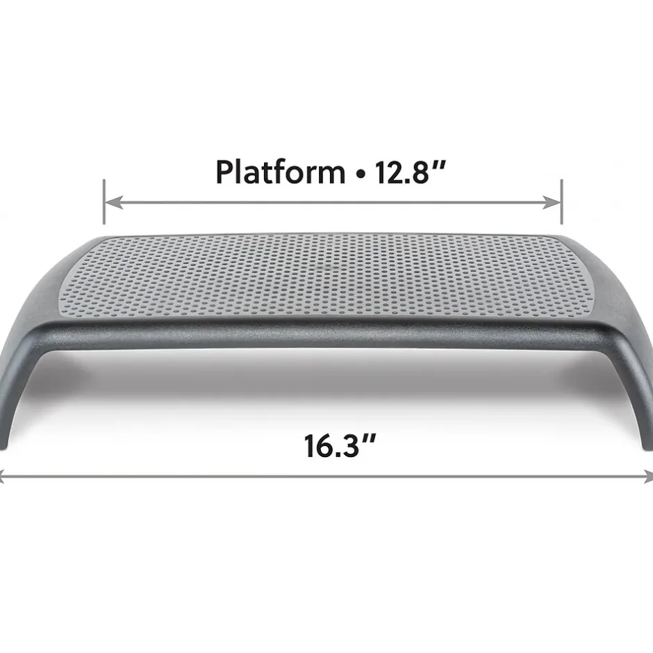 Made in the USA, the attractive ErgoRiser monitor stand by Allsop raises your monitor or laptop 2.75″ to a comfortable, ergonomic viewing height. This small and compact stand can support up to 20 lbs. and features a sleek micro-texture finish that complements any office. The ErgoRiser also creates extra storage under the monitor for a compact keyboard, tablet, or extra office supplies. Nonskid protective feet prevent sliding and protect your desk surface.