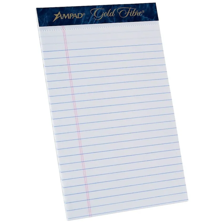 Create to-do lists and write notes on these college-ruled white perforated notepads. The college-ruled spacing makes these notepads ideal for individuals with larger handwriting, while the perforated edge ensures sheets are easy to tear out. Each page of these TOPS Gold Fibre college-ruled perforated notepads is printed with crisp lines that let writing stand out.