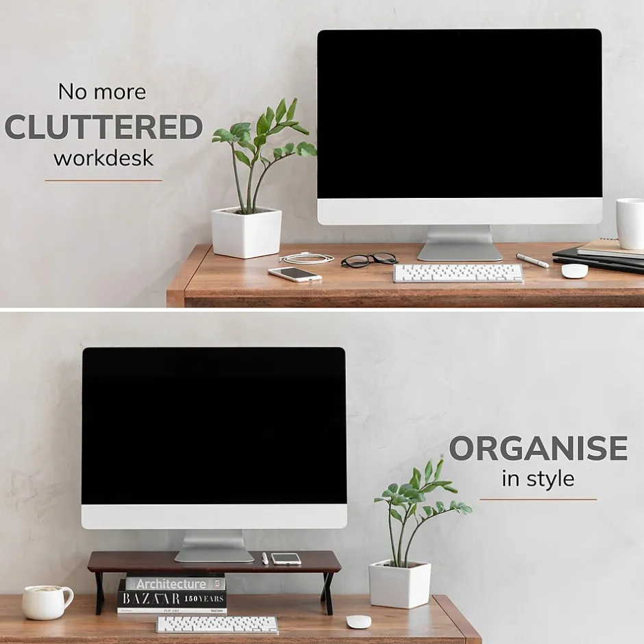 Transform your workspace with Anji Mountain’s versatile Monitor Stands, accommodating monitors up to 22 pounds. Whether you work from home, a small office, or a corporate setting, our stands offer the perfect combination of ergonomic design and modern style to enhance your productivity and comfort. This model features a sleek walnut-finished acacia wood top and sturdy steel legs and anti-skid foot pads for stability on any surface, ensuring your workspace is both functional and stylish. Our ergonomic design encourages proper posture and reduces eye strain and enhances your workflow. With Anji Mountain’s Monitor Stands, you’re not just getting a stand; you’re investing in a more comfortable, organized, and productive workspace.