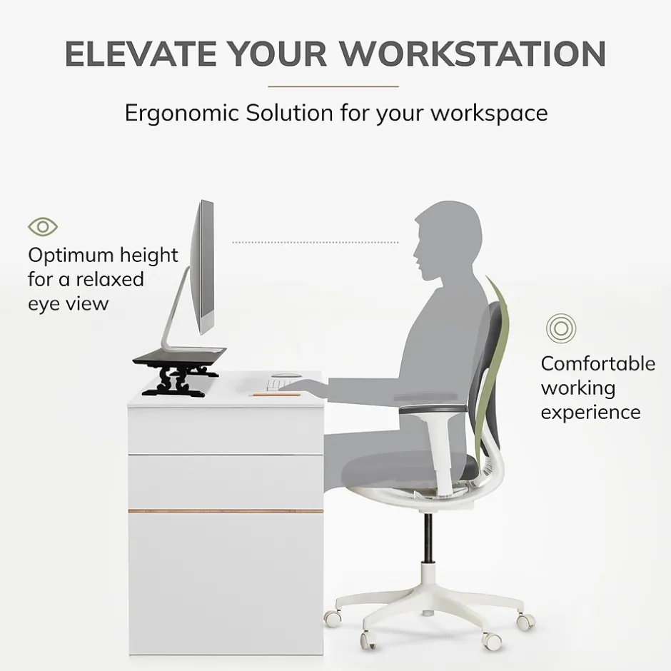 - Raises monitor screens 4.75″ for comfortable viewing