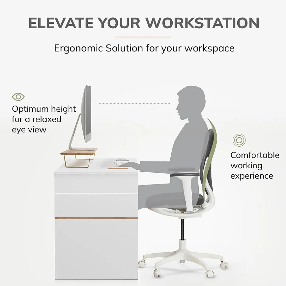 - Raises monitor screens 4.75″ for comfortable viewing