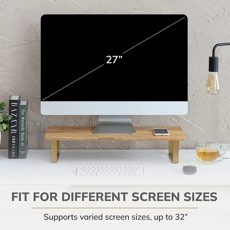 - Anji Mountain Monitor Stand Made From Mango Wood and Gold Metal Legs In A Trapezoid Design