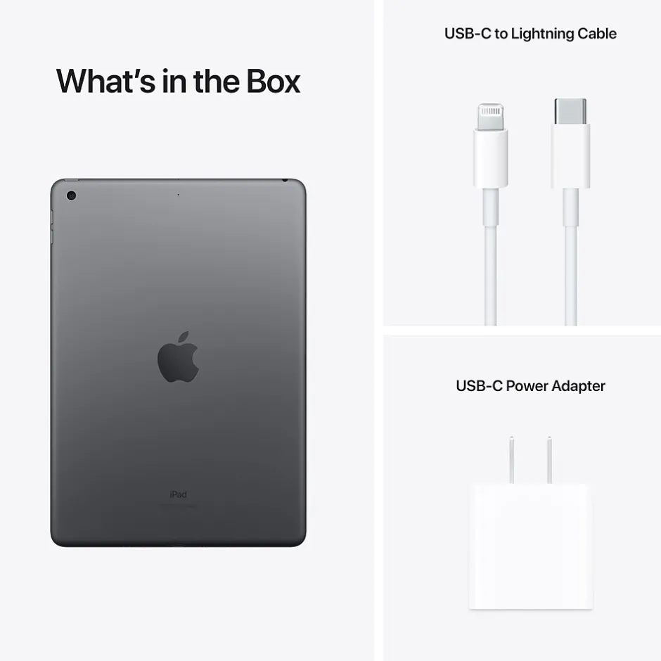 - Package contents: iPad, Lightning to USB-C cable, and 20W USB-C power adapter