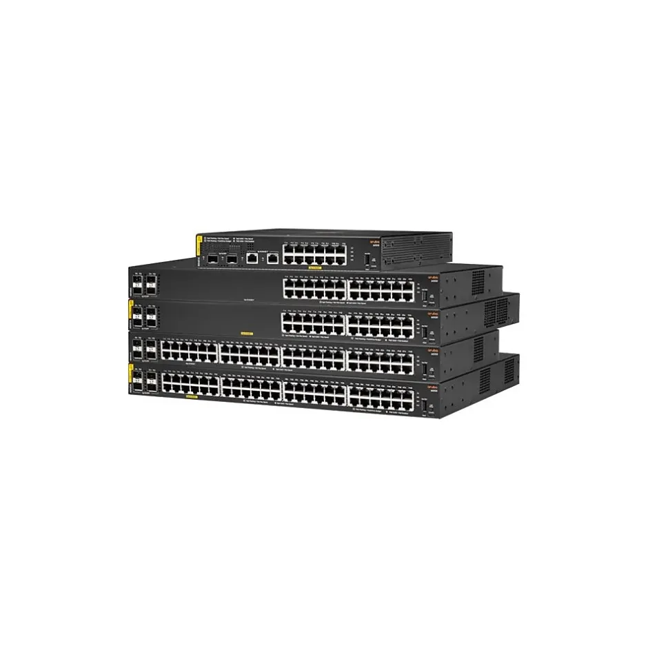 The Aruba CX 6000 Switch series is modern family of entry level access switches perfect for branch offices, midsize businesses, and small enterprises. Optimized for reliable, simple and secure access, the CX 6000 series provides a convenient and cost-effective wired access solution for networks supporting IoT, mobile, and cloud applications. The CX 6000 series is based on the Aruba ASIC architecture with the programmable AOS-CX operating system used across the entire Aruba CX portfolio for a more consistent, more efficient operator experience. This fully managed series has convenient built-in uplinks with up to 370W of PoE+ to support IoT devices such as security cameras and wireless APs. A compact and fanless model is perfect for use in quiet, small work spaces. The CX 6000 series is easy to deploy and use with flexible management choices that include Web GUI, CLI, cloudbased and on-premise Aruba Central management, so you can choose the best fit for your business and network environment. Delivering Layer 2 capabilities with enhanced access security, traffic prioritization, and IPv6 support, the CX 6000 also simplifies ownership and brings peace of mind with no switch software licensing
