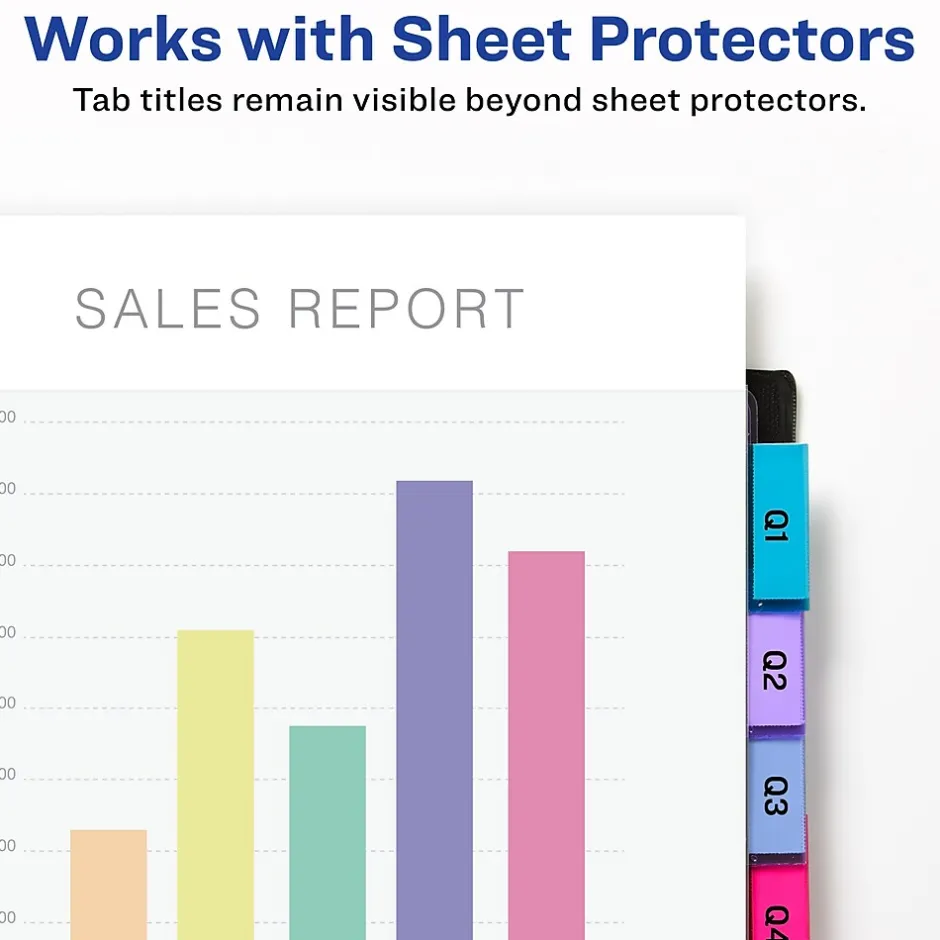 - Tab titles remain visible with tabs that extend beyond sheet protectors