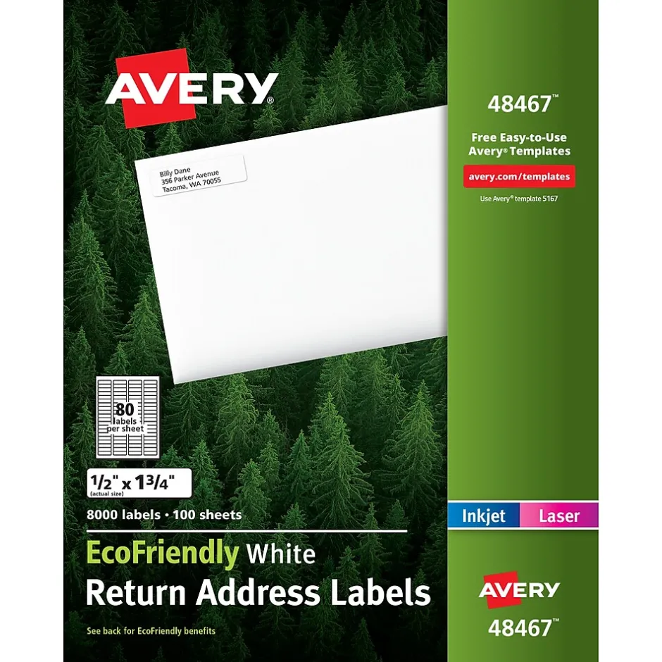 Take a step toward helping the planet with these Return Address Labels–the labels that work for you and the environment. With our free templates and designs at avery.com/print you can transform your mailing lists into customized labels in minutes. They’re also great to use personalized gifts, crafts, organization and identification. The label paper and package made of 100% recycled material, and they’re also processed chlorine free. Both are printed using soy- and vegetable-based inks and both are recyclable. It’s a little easier to do your part to leave a smaller footprint.