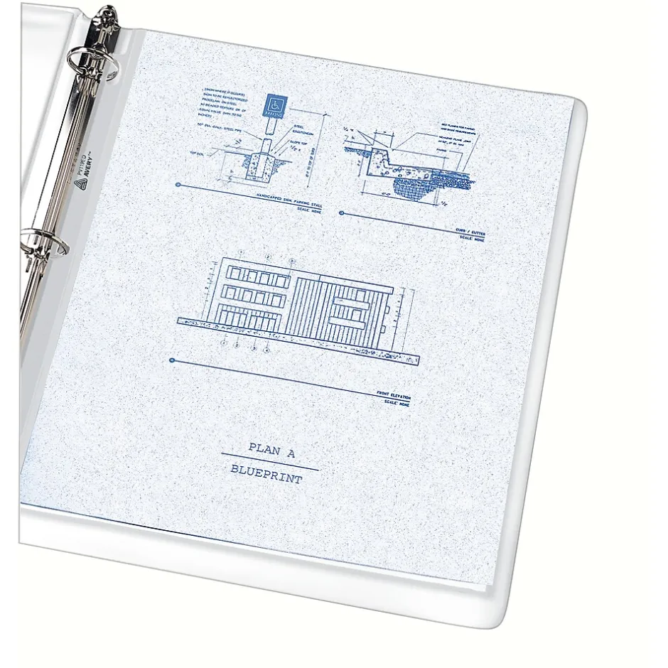 Avery® Semi clear sheet protector made of non-stick economy weight propylene. Sheet protector supports sheets that measures 8 1/2″ x 11″ and offers secure storage and is semi-transparent to avoid direct exposure of documents, sold as 50 per box.