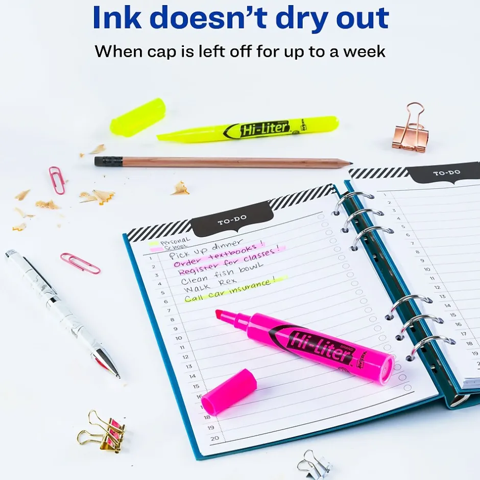 HI-LITER® Assorted desk style highlighter features chisel tip that does not fray or mush. Highlighter has durable plastic tip for smooth highlighting.