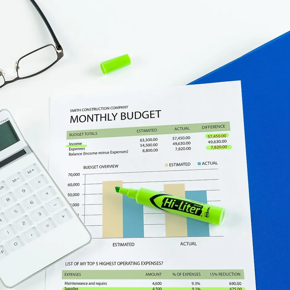 - Highlighters feature a tank-style barrel with long-lasting ink supply