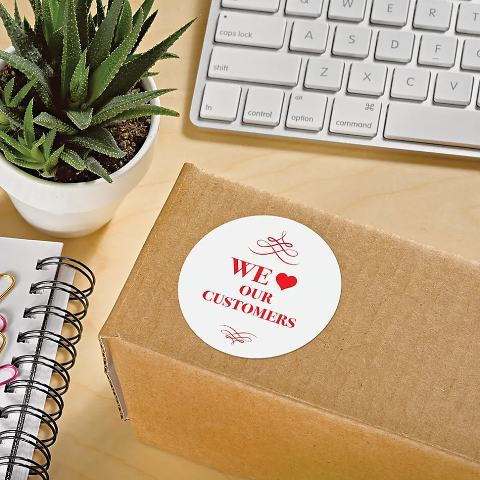 - Each label measures 2.5″ Dia.