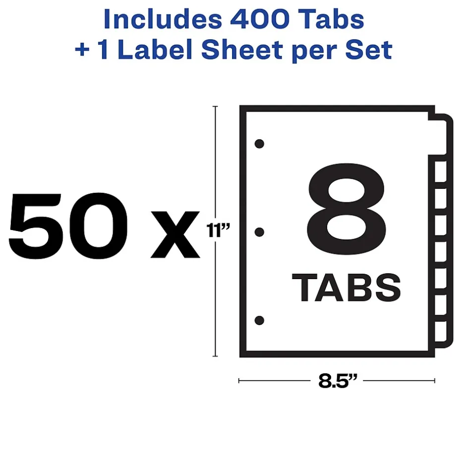 - Label all 8 tab dividers at once with the Index Maker Easy Apply Label strip that results in 50 perfectly aligned sets of tabs