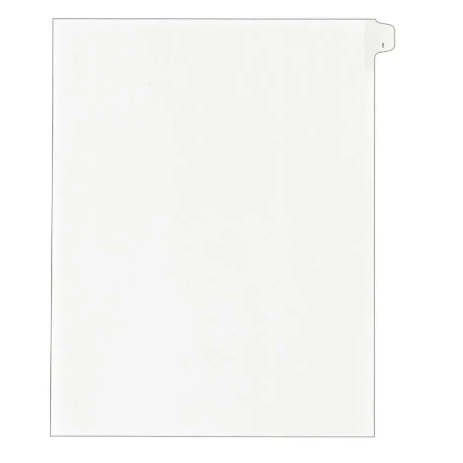 Here’s a way to present your case in a clear and organized manner. Use these Avery(R) Individual Legal Dividers – Allstate(R) Style to bring order to your index briefs, legal exhibits, mortgage documents and more. Each set includes 25 identical dividers printed using Helvetica regular type so you can build the specific sections you need. White paper stock with clear Rip Proof(TM) reinforced, dual-sided tabs make it easy to organize your information. The binding edge is unpunched, so these dividers can fit practically any binding system. You’ll go on the record for having neat and orderly files.