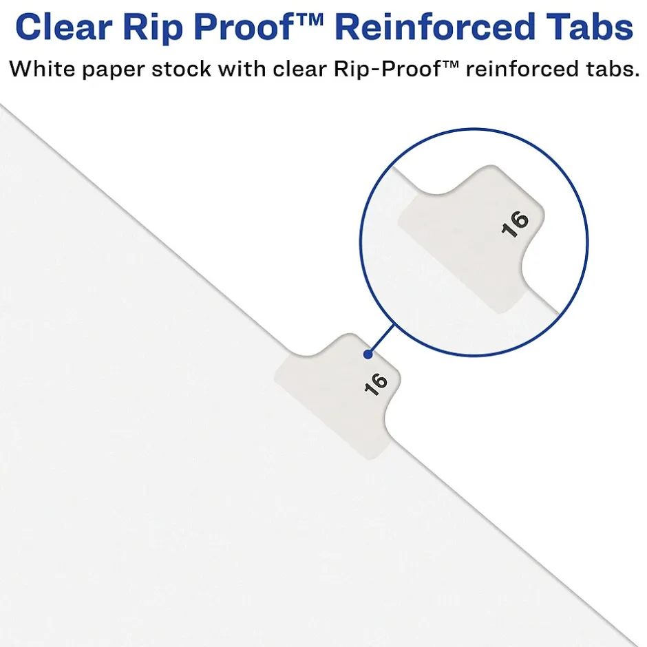 - White paper stock dividers feature clear Rip Proof reinforced tabs